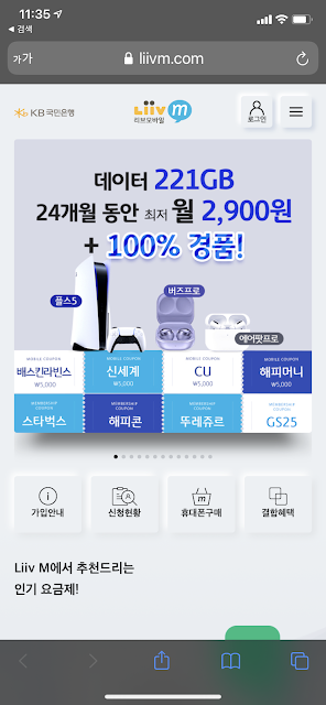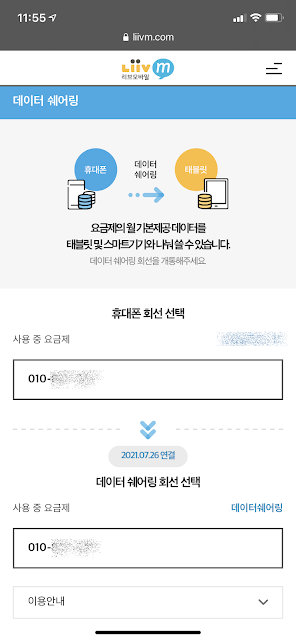 우선 당연한 얘기이지만 Liiv M에 가입한 휴대전화가 있어야 하고, 데이터 쉐어링 사용이 가능한 요금제를 사용하고 있어야 한다.