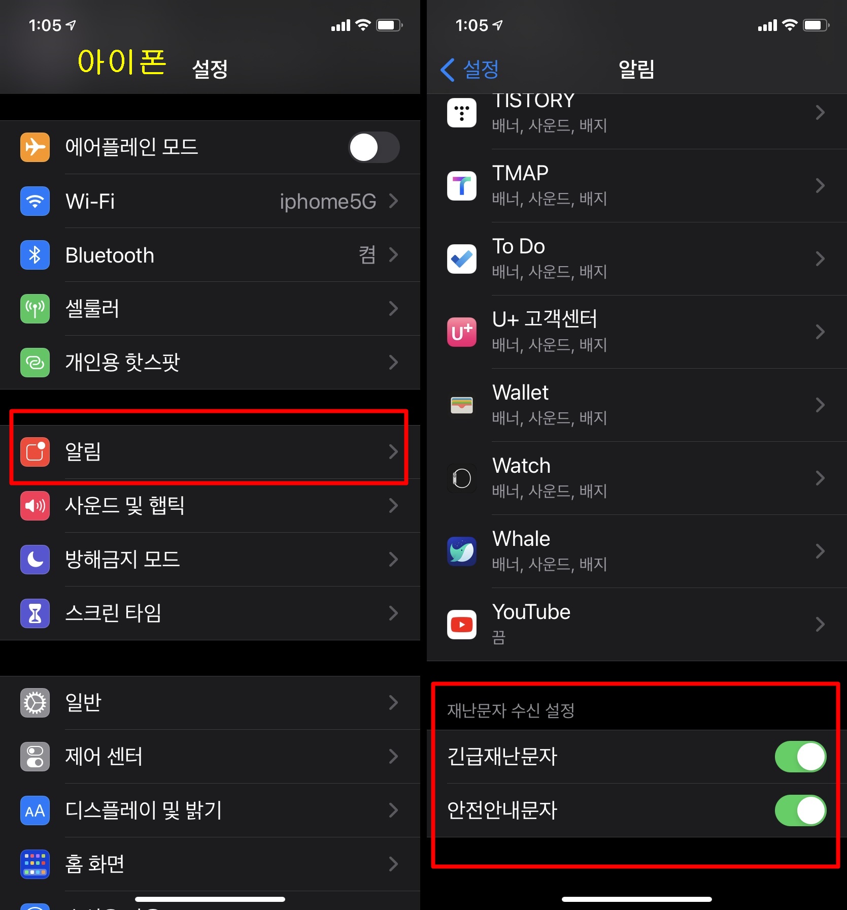 아이폰 자체에서도 수신하고 싶지 않다면 아이폰 설정>알림에서 끄면 되지만 정말 긴급할때를 대비해서 끄지 않는 것이 좋겠다.