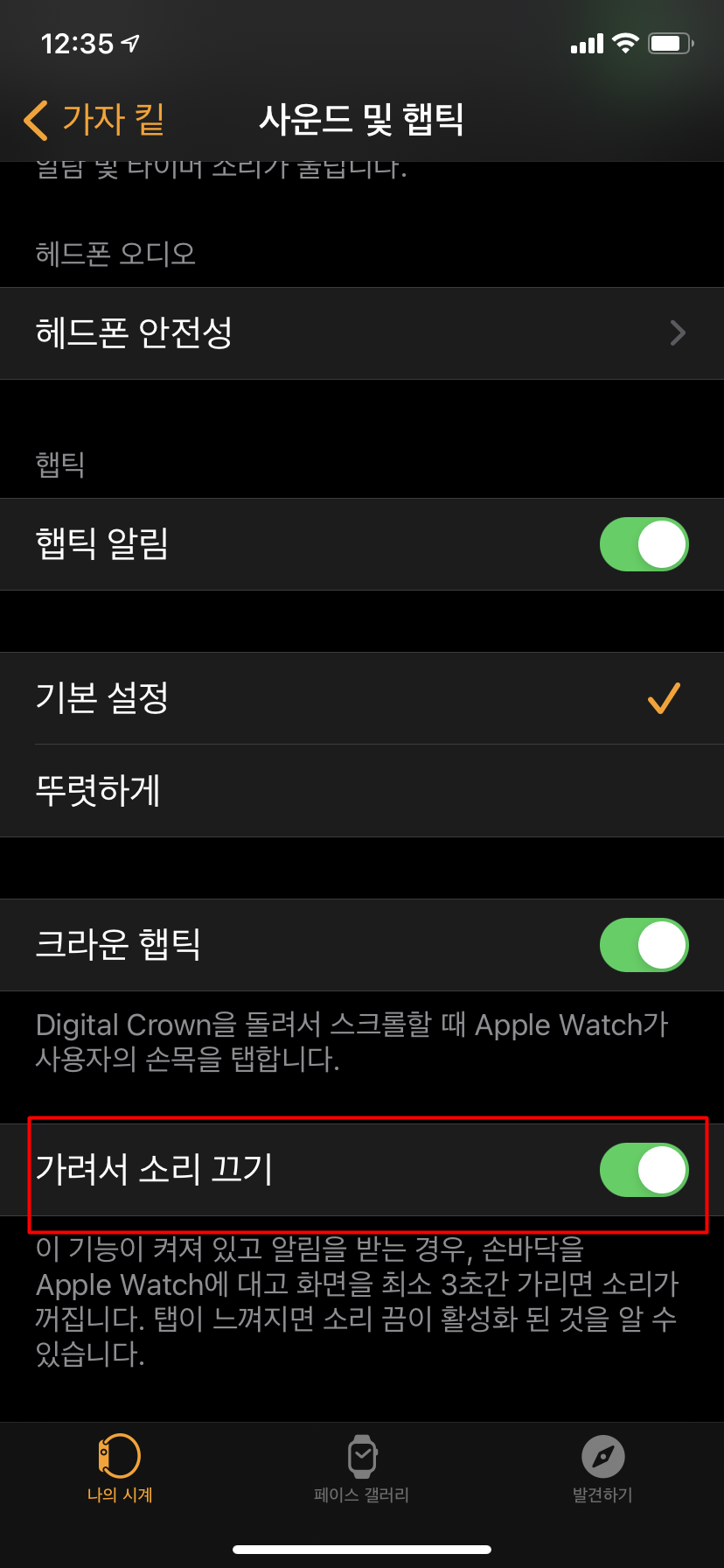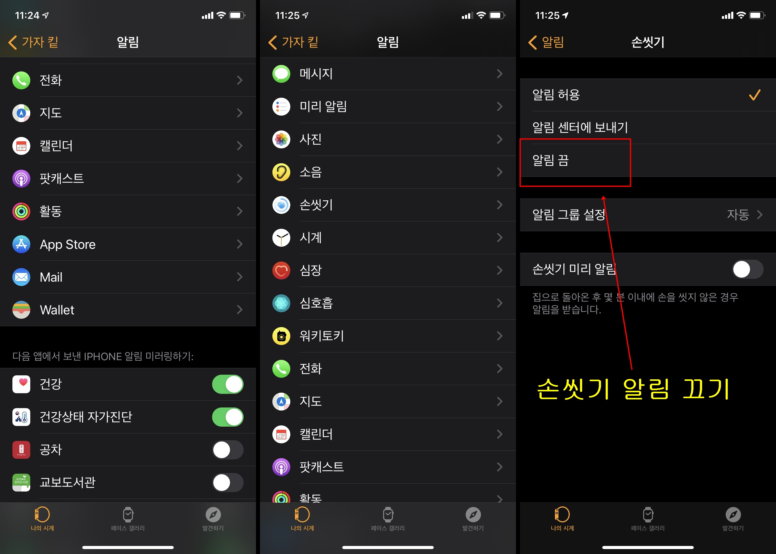 Apple Watch에서 설정을 실행해도 되지만 화면이 작아서 아이폰에서 전반적인 설정을 하는 것을 추천한다.