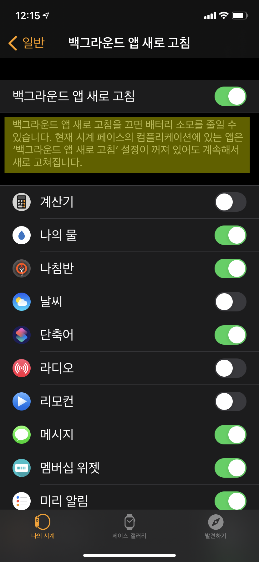 백그라운 앱 새로 고침에서 꼭 켜 두어야 하는 것을 제외하고는 배터리 절약을 위해 꺼둔다.