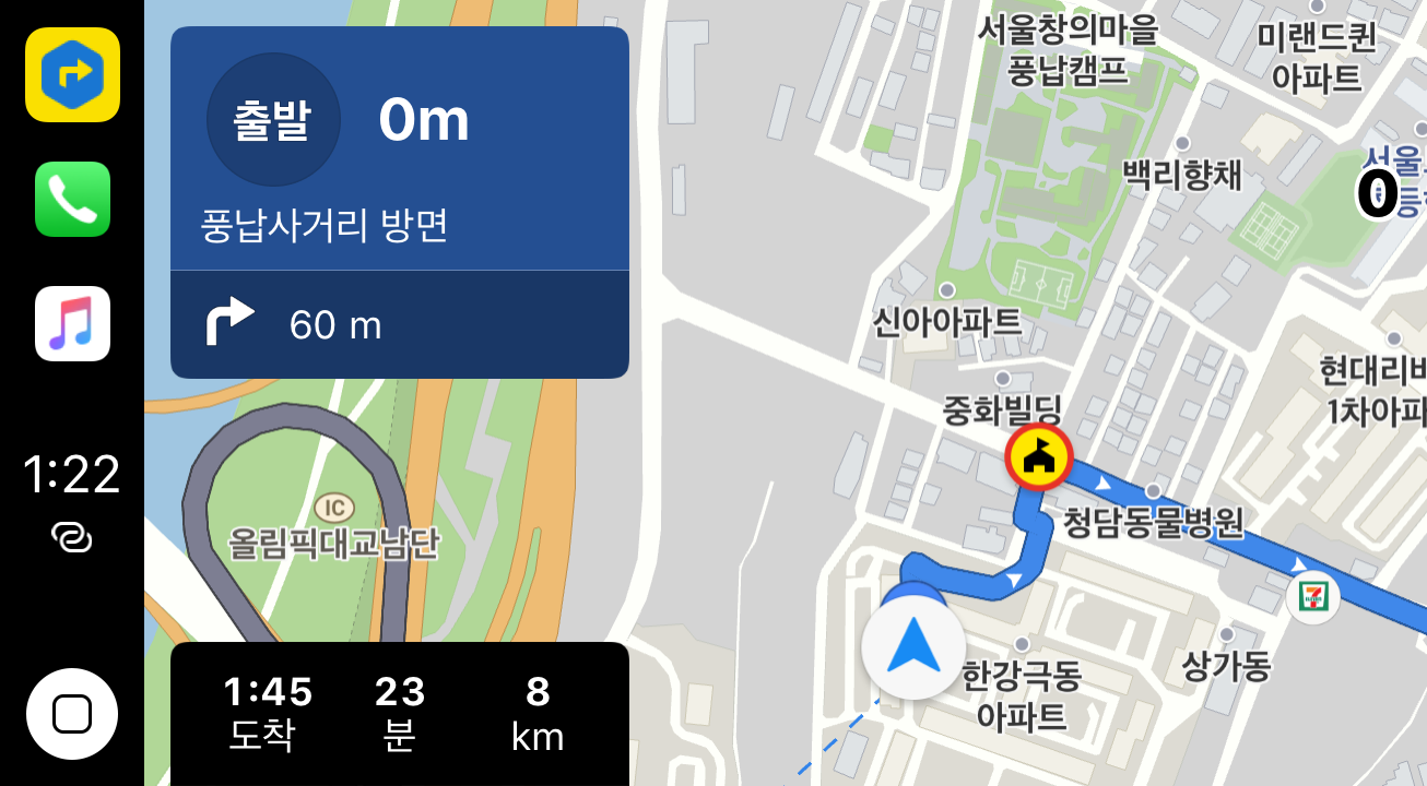 내비게이션은 T맵, 아이나비 에어, 카카오 내비를 실험해보았다. 앱스토어에서 T맵은 구버전 다운로드를 권해서 일단 설치를 유보하였고, 아이나비 에어는 실행은 되지만 경로 검색을 하면 튕겨서 삭제하였다. 카카오 내비는 구동이 약간 느리지만 내비게이션 기능이 정상 작동하였다.
