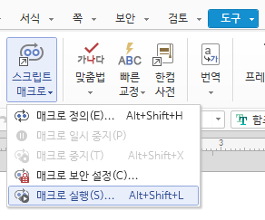 - 도구>스크립트 매크로>매크로 실행