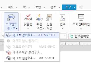 1. 도구>스크립트 매크로>매크로 정의