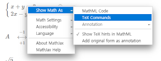 👀 웹페이지 상에서는 한글의 수식을 직접적으로 표현할 수 없어서 MathJax를 활용하였다. MathJax는 수식에서 마우스 우클릭하여 \(\TeX\) 코드를 확인할 수 있다.
